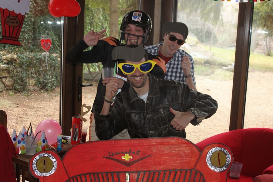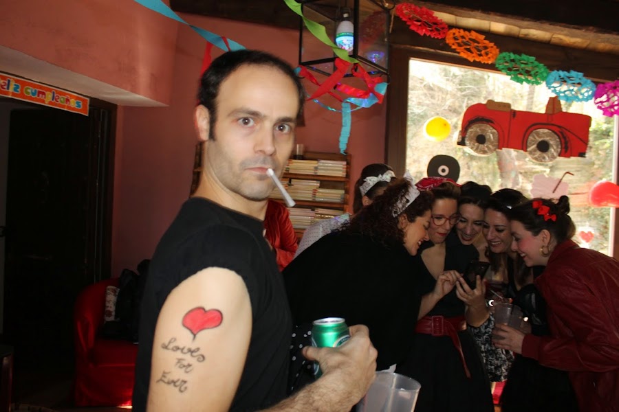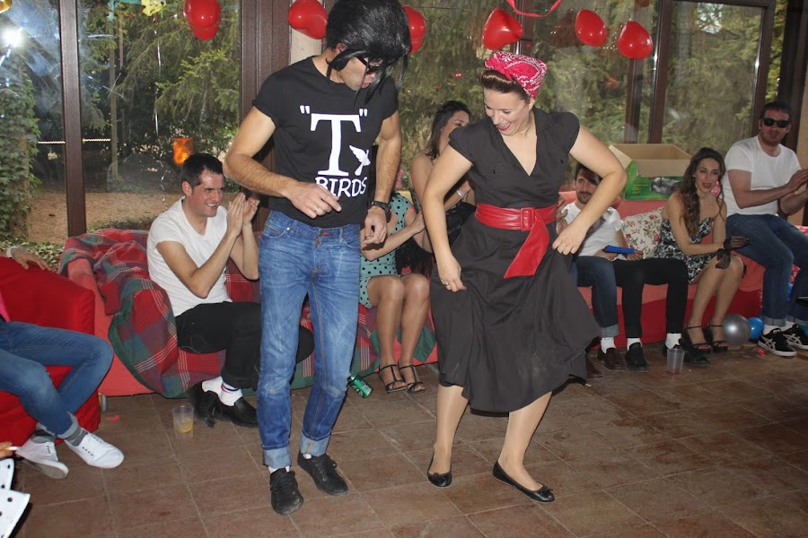 Mes y medio planificando esta súper party y la verdad que todo el esfuerzo mereció la pena. El sitio, la decoración, comida, bebida, música, todo estuvo perfecto y si hablamos de la compañía ya no os quiero contar, ¡genial, genial!. Hice muchísimas fotos y como ya os dije en post anteriores no os aseguraba que pudiera enseñar todas, algunas no son aptas para todos los públicos, jajaja. He elegido las que creo que si se pueden mostrar y las demás me las reservo para mi intimidad, jajajaja, además se que mis amigos agradecerán que muchas de ellas no salgan a la luz. Es la primera vez que organizaba mi cumpleaños de esta manera tan especial y con el buen sabor de boca que nos ha dejado a todos, seguro que repetiremos. Fin de semana fuera de casa, sin nuestros peques, solo para los mayores, una fiesta para disfrutar y desconectar, ¡increíble!. La idea de disfrazarnos de los personajes de la peli de Grease estuvo súper divertido, todo el mundo se lo curro un montón y hubo máxima colaboración. Premios para los mejores vestidos de la fiesta, juegos y muchas sorpresas. Agradezco de todo corazón a todos mis amigos el acompañarme en este día tan especial, son muy grandes.