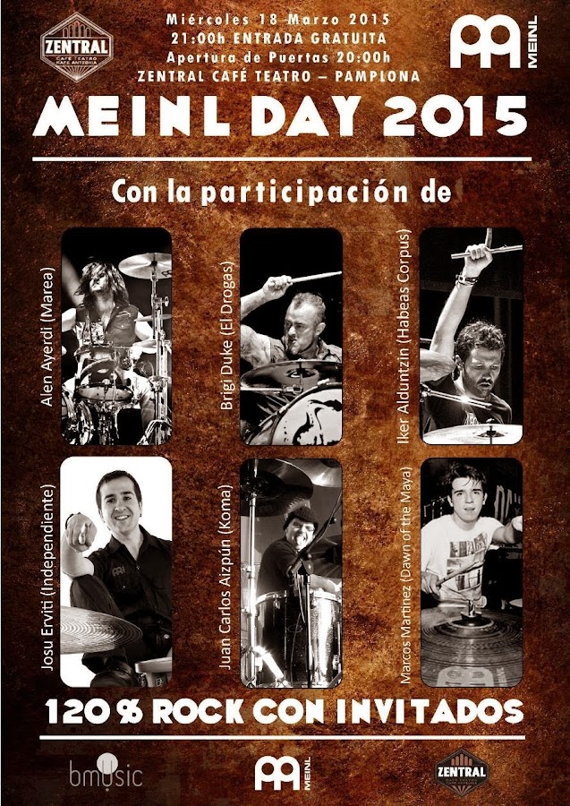 Noticia!! El 18 de marzo, víspera de Las Fallas aquí en Valencia, tendrá lugar en Pamplona en Zentral Café, el Meinl Day 2015. Como podréis suponer el Meinl Day 2015, va a ser todo un despliegue de la nueva artilleria que nos trae la marca alemana de platos.