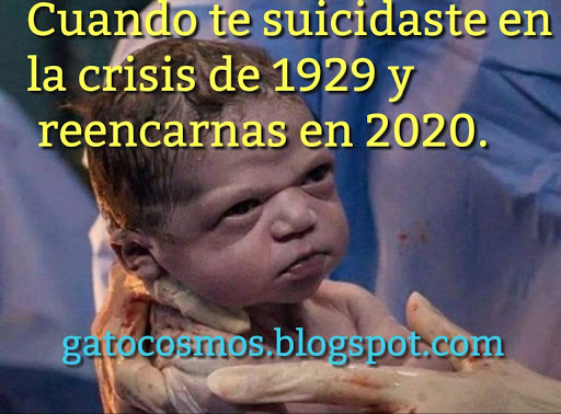Blog de gatocosmos Idea guardada 0 veces Sé la primera persona en valorar esta idea Valorar Memes: Año 2020. Bebé recién nacido. Reencarnación. Crisis 1929. Cuando te suicidaste por la crisis de 1929 pero reencarnas en 2020. Fuente: este post proviene de Blog de gatocosmos, donde puedes consultar el contenido original. ¿Vulnera este post tus derechos? Pincha aquí. Creado: 05/05/2020 05:05 ¿Qué te ha parecido esta idea? Excelente Muy buena Buena Normal Mala Esta idea proviene de: Blog de gatocosmoshttp://gatocosmos.blogspot.com Y estas son sus últimas ideas publicadas: Blog de gatocosmos Ciclismo memes cheems Cheems en el antro: Cheems lavando trastes: Blog de gatocosmos Memes Cheems: La mano peluda. Memes Cheems: Naruto vs Saitama VS Seiya: Blog de gatocosmos Memes: Cheems burlándose de Doge. Memes boliche argentina mexicano: Blog de gatocosmos Memes Cheems, repartidor delivery perdido. Nuevo look: olvide marcar este meme por si lo ven por ahí.