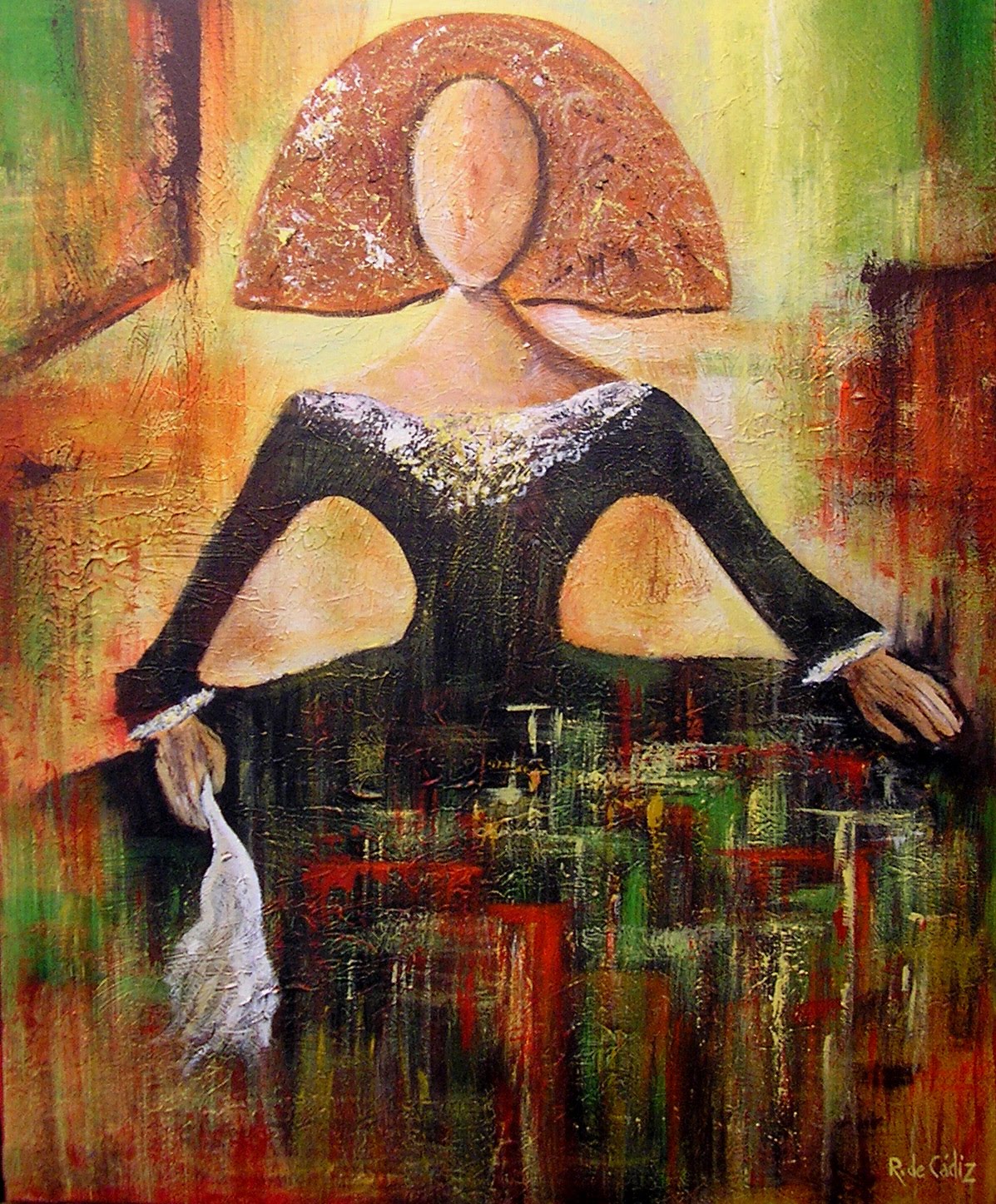 Menina semi-abstracta o semi-realista.Acrílico y texturas sobre lienzo.55x65cms.
