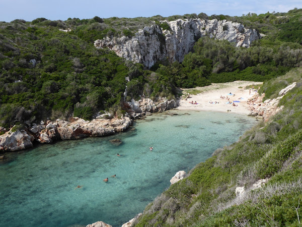 A la cala se accede andando desde el parking de cala Mitjana, unos 30 minutos, hay desniveles.