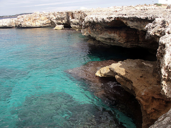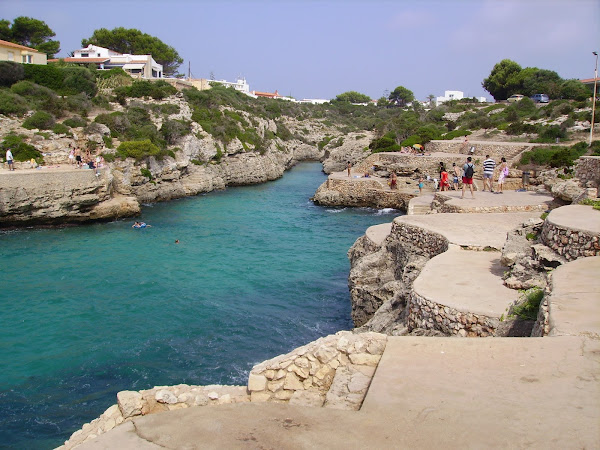 Parte de la costa rocosa con aguas turquesas, tranquila y aislada se puede hacer el "Cami de Cavalls", este es el tramo que va desde Ciudadela a Calan Bosc.
