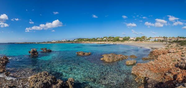 Playa grande con todo tipo de servicios. En un extremo de la playa están las ruinas de una antigua basílica paleocristiana del siglo V. En el exterior hay una necrópolis excavada en la roca.