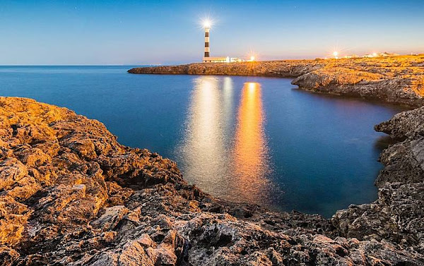 cala tortuga y más escondida cala presili, al fondo el Faro de Favàritx
