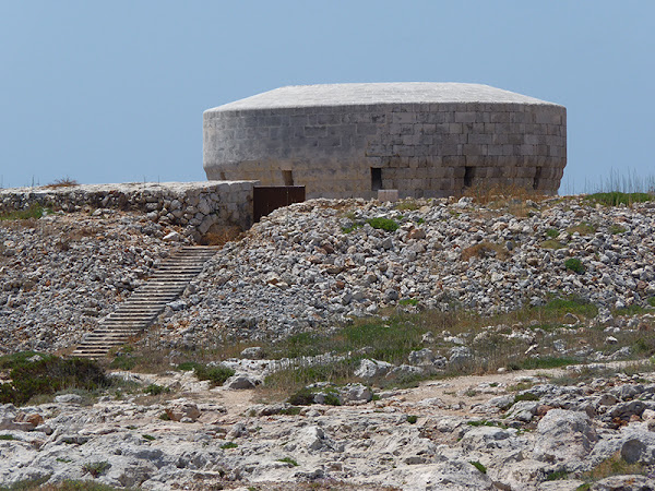 Torre de tipo Martello construida sobre la colina del turco junto al fuerte de Marlborough en la cala de San Esteban.