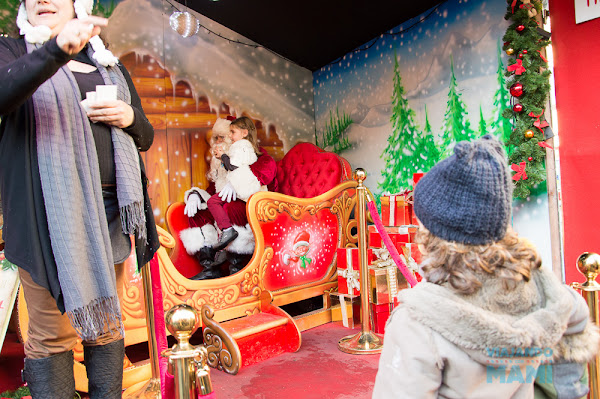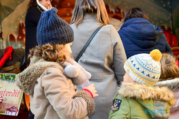El Mercado de Navidad Villa Tourny es bastante grande, con montones de diferentes puestos, así que vamos parando en cada uno, y la verdad es que a los niños tanta parada les está empezando a inquietar. Están deseando entregar sus cartas como no a Papá Noel, pero todavía nos queda esperar una pequeña cola llena de niños ansiosos por subirse a los brazos de su personaje favorito por estas fiestas.