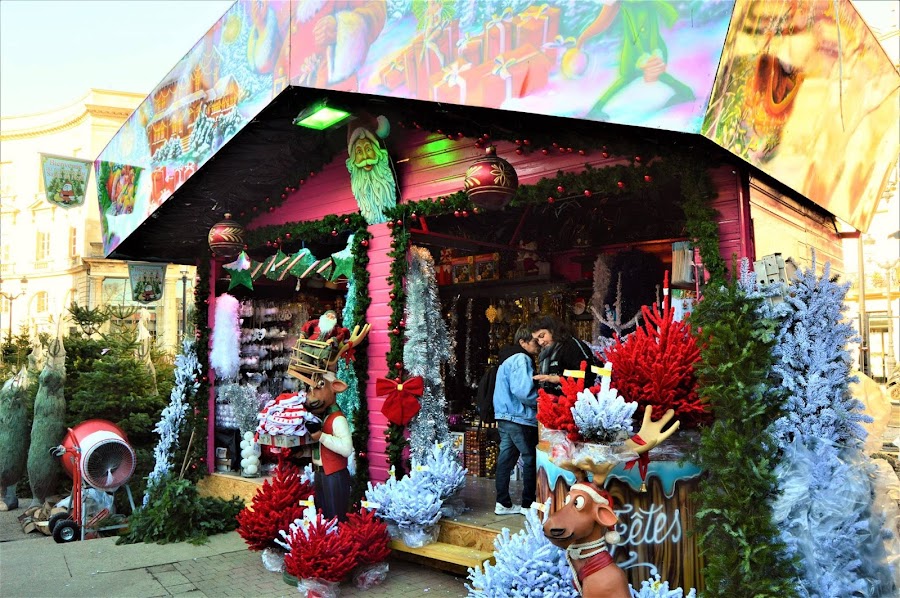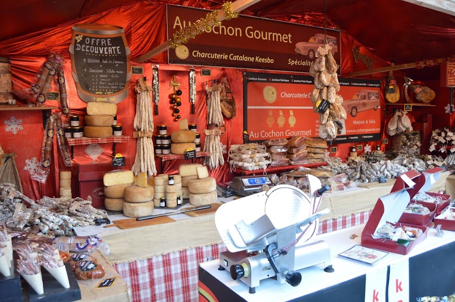 Puestos de todo tipo, con adornos navideños, muñecos para el belen, juguetes, ropa, accesorios, cuentos, árboles de Navidad, joyas, perfumes y como no, los puestos dedicados a los productos tradicionales como los ricos quesos franceses, sabrosas crepes, coloridas golosinas, embutidos típicos de la zona, bocadillos, bebidas varias, donde destaca la más típica, el famoso le vin chaud, o vino caliente ¿en cual de ellos te quedarías tu?