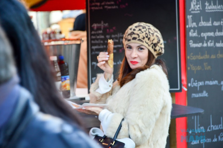 Y aunque los niños no paran de preguntar por Papá Noel, no he podido resistirme a parar en uno de mis puestos favoritos para merendar una crepe, y aunque aquí en esta foto solo se me ve a mí, los pequeños están sentados poniéndose las botas con unas de chocolate ¡así que todos contentos!.