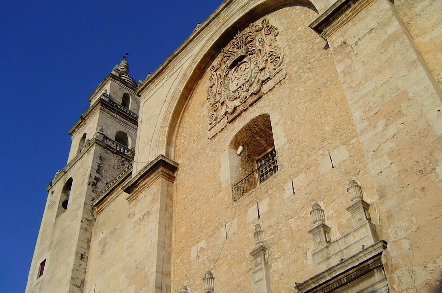 Como la mayoría de las ciudades coloniales españolas, Mérida está construida a manera de damero, con la Plaza de la Independencia por centro. A su alrededor encontramos la casa de Montejo, construida en 1543 para servir de palacio al primer gobernador y que hoy es la sede de una entidad bancaria, conservando aún la portada plateresca con el escudo de armas de los Montejo y las estatuas de los conquistadores, triunfantes sobre las cabezas de los mayas.