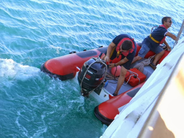 venian con nosotros 3 alumnos de Aeronáutica, y aquí les vemos en su clase de salvamento marítimo
