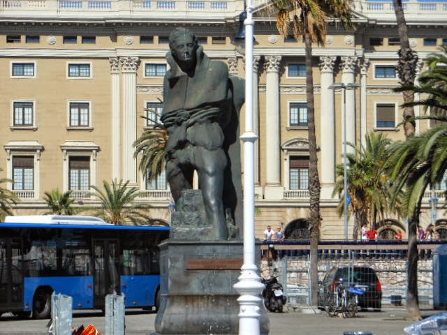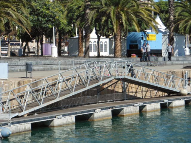 Este es el amarradero del Santa Eulalia, delante la estatua, parece que le da la bienvenida