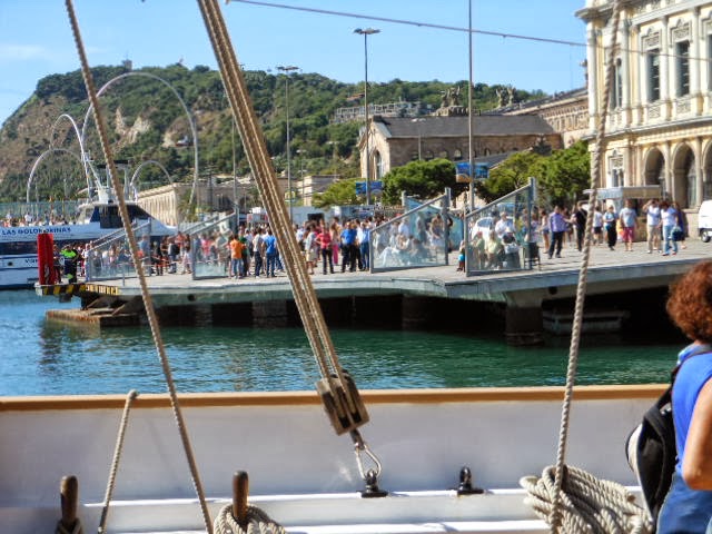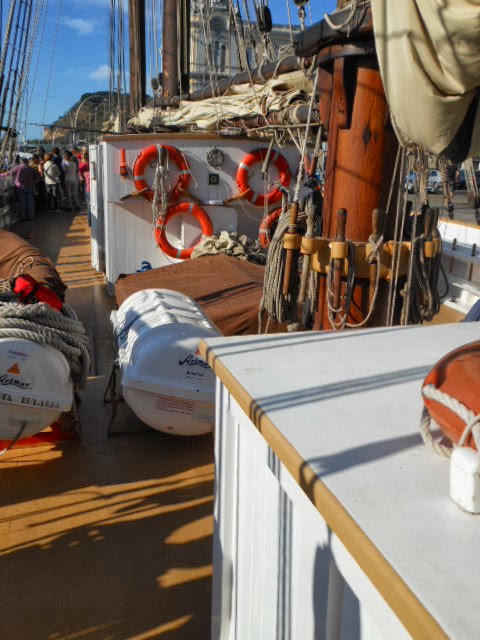 Este velero tan bien conservado, es de los más antiguos que quedan en todo el Mediterráneo, es propiedad del museo marítimo de Barcelona y compite en regatas y otros eventos,estuvimos invitados a disfrutar de una travesía ,que resultó fantástica, sus 6 tripulantes fijos que se ocupan por turnos de él, nos tratarón con gran cortesía y amabilidad explicándonos toda su historia y funcionamiento