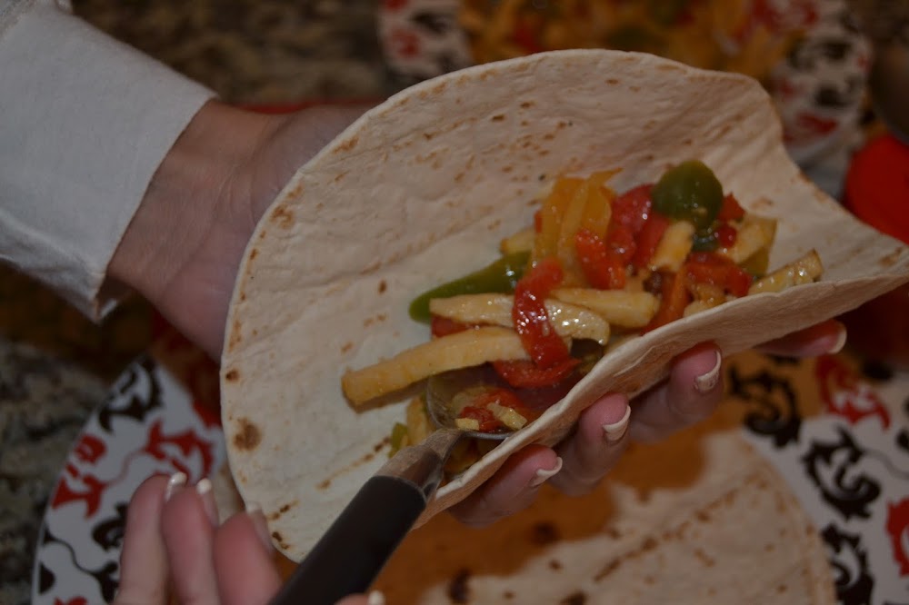 Os diré que siento especial debilidad por las fajitas de pollo, pimientos y cebolla con guacamole...