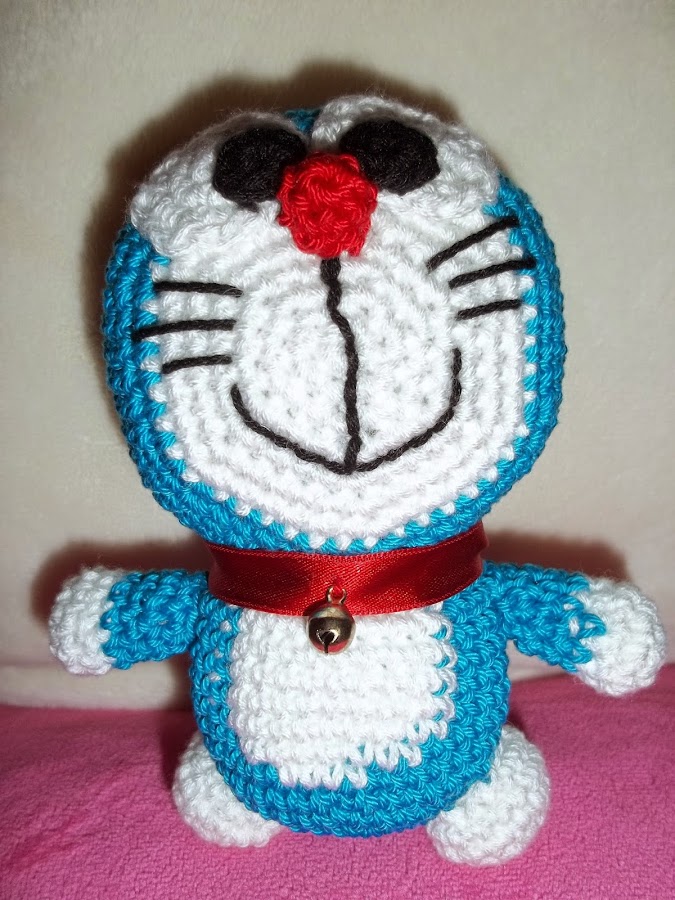 ¿Qué sería de mí sin vosotras? Hoy he respondido a una petición: Doraemon en su versión amigurumi. No soy muy partidaria de tejer personajes puesto que no soporto que no se parezcan al original. Así que, espero no estar decepcionando a sus mayores fans. Y sin más os presento a mi nueva creación.