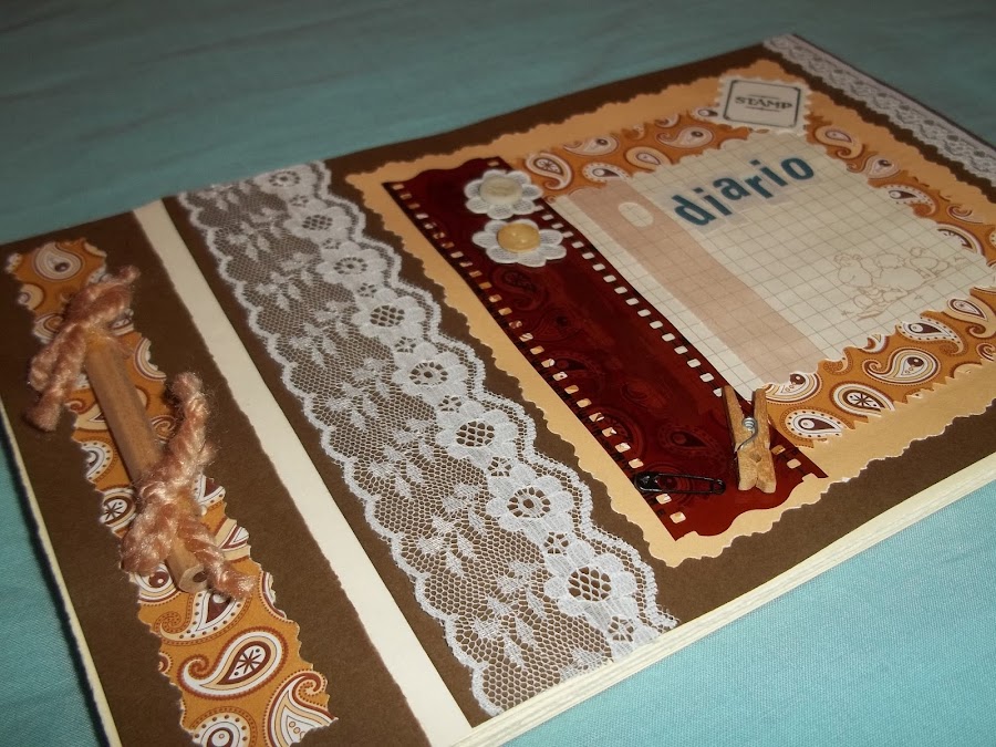 Llevaba mucho tiempo con el gusanillo del scrapbooking, ya conocéis la técnica, consiste en pegar recortes y diferentes elementos de muy diversos materiales en un Álbum, un diario o cualquier cuaderno que queráis redecorar. ¡Quedan fabulosos! sólo necesitáis muchas piezas de papel, tela, cartón... que ya no necésitéis y darles un nuevo uso, luego lo unes con pegamento y mucha creatividad y ¡voilá! los resultados son sorprendentes. Éste es el primero que he hecho y creo que para ser el pionero no ha quedado nada mal.
