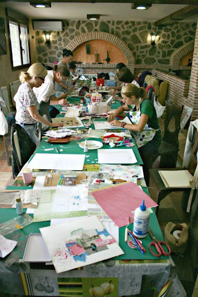 Un sábado super especial! todo el día haciendo lo que me gusta en la mejor compañía. Raquel y Ana ( Gargamell scrap) habían organizado todo de manera perfecta. No tuve tiempo de ir a revisar el material, sólo un día antes y ya en el retiro... pero todo estaba ahí y más! (gracias chicas!)