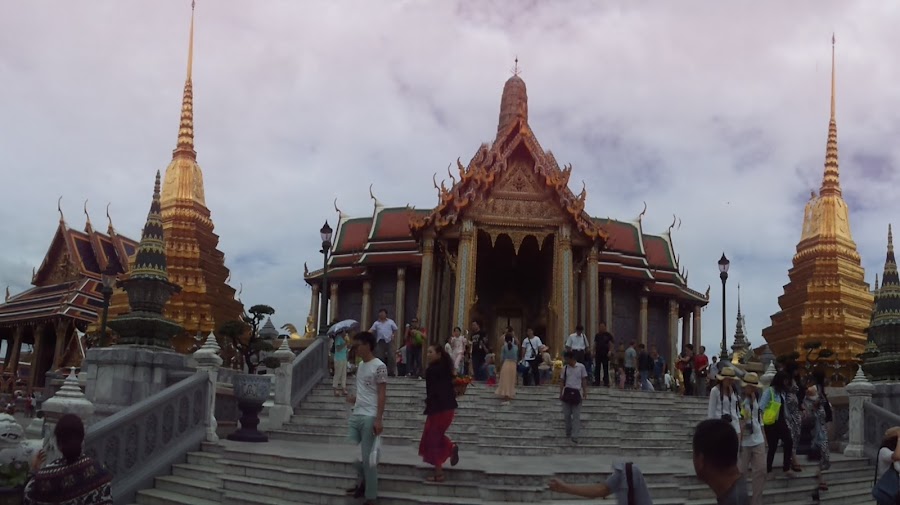 Este taxista fue honesto, yo iba con el miedo en el cuerpo por lo que nos pasó el primer día pero no se volvería a repetir. Al entrar en el gran palacio había muchísima gente, una locura, vimos por fin donde estaban las colas y cogimos los tickets. Fueron 400 baths por persona. No entendimos muy bien los tickets por que tenía varias partes para recortar y creo que eran varias cosas para visitar, per una vez dentro no había nada más que el palacio, precioso por cierto, creo que el monumento más bonito que vimos en Tailandia.