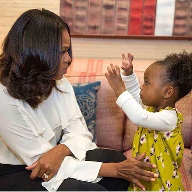 Hoy no solo reafirmo mi compromiso con esas pequeñas que necesitan un modelo positivo, sino que me siento orgullosa de nunca haber abandonado mi meta. Por eso al ver en instagrama la foto de una niña embobada ante el cuadro de Michalle Obama. Me he sentido emocionada, feliz. Pero sobre todod agradecida a esa mujer que no concozco personalmente pero, que con su sola existencia en este mundo ha cambiado tantas cosas y a dado tantas esperanzas a niñas y mujeres que nunca esperarón verse reflejadas en un mujer de carne y hueso como ella. Me siento lleba de alegria por saber que las niñas de ahora y las que nazcan en l futuro tendran un espejo de talento, bondad y buen hacer el que mirarse. Y pienso que cuando me hubiera gustado tener alguíen tan cercano en mi infancia para poder quedarme embobada frente a ella y tener la revelación que expresa la pequeña en la foto.