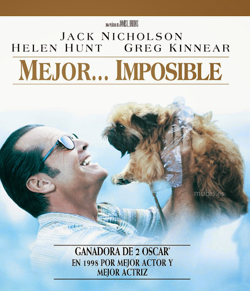 Por si no la habéis visto (cosa rara, porque la echan bastante en la tele, no obstante es del año 97), es una historia de un escritor de éxito, antisocial, obsesivo compulsivo (Jack Nicholson), enamorado de la camarera que le sirve su comida todos los días (Helen Hunt), que tiene una vida complicada porque es mamá soltera de un niño con bastantes problemas de salud. El triángulo protagonista lo cierra, el vecino artista gay (Greg Kinnear) que hará de nexo de unión de los protagonistas junto a su adorable perro. Obviamente no os la voy a destripar, pero sí os contaré, que el prota, el Señor Udall, le dice la frase más bonita que se puede decir a alguien, a Carol (la camarera): "Tú haces que quiera ser mejor persona"