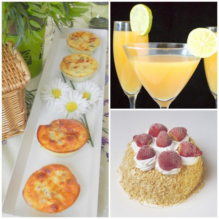 - Los acompañamos con uno cocktail mimosa, porque los quichés llenan un poco, así que mejor algo fresquito para acompañar y que sea facilito de hacer para poder reponer la copa...y sin mucho alcohol tampoco, que no es bueno; se hace a partes iguales de champagne (o cava) y zumo de naranja (natural mucho mejor), muy fríos, podéis decorar la copa o vaso como queráis!