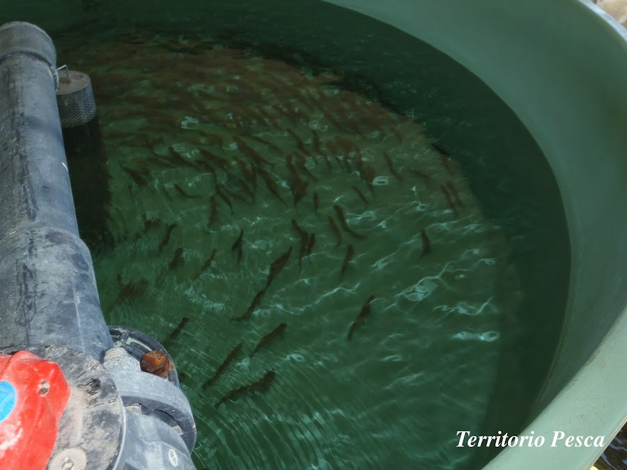 Dentro de las líneas de actuación está la creación de unos stocks de reproductores autóctonos que constituyan un patrimonio genético, y, además, suministren material reproductor para la producción de individuos de repoblación que permitan recuperar poblaciones tras mortalidades originadas por agentes extraordinarios o por la acción del hombre. Pasada la etapa de la incubación, el alevín sale del huevo a golpe de sacudidas y se alimenta del saco vitelino durante 15 o 20 días y antes de que esas reservas se agoten se alimentará de comida para peces servida mecánicamente. El alevín de 30 mm ya empieza a mantener una cierta actividad entre aguas en los estanques, buscando la comida que se les aporta.