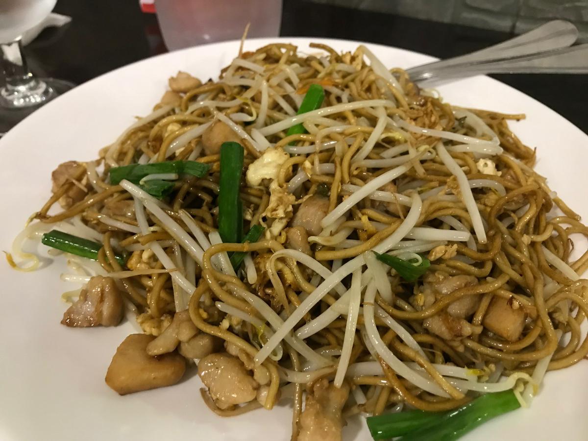 La comanda: arroz salteado, pato pekin, tallarines con gambas, pollo rebozado y cerdo picante. Después cuando aparecieron los platos nos dimos cuenta que para tres personas es demasiado y eso nos pasó porque las raciones que sirven en el restaurante Min Dou son generosas.