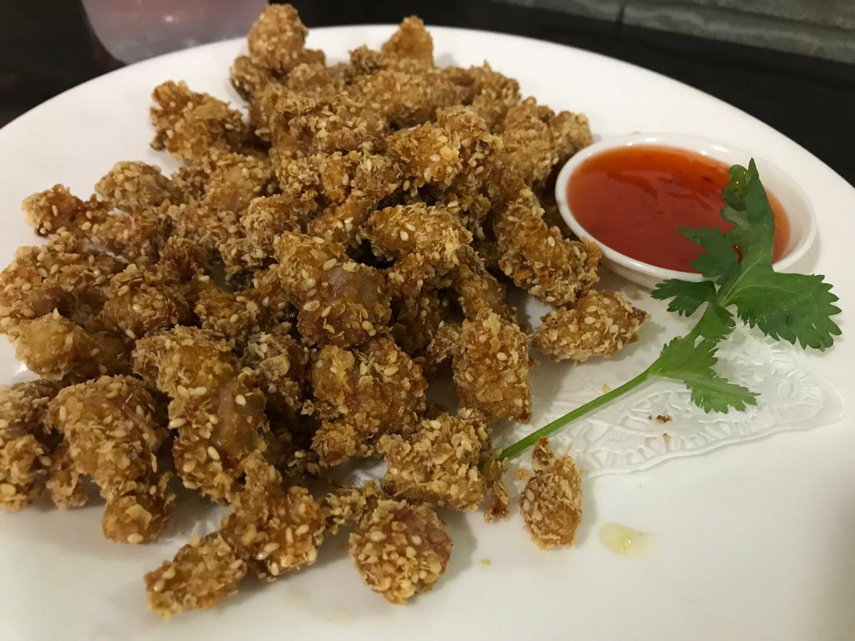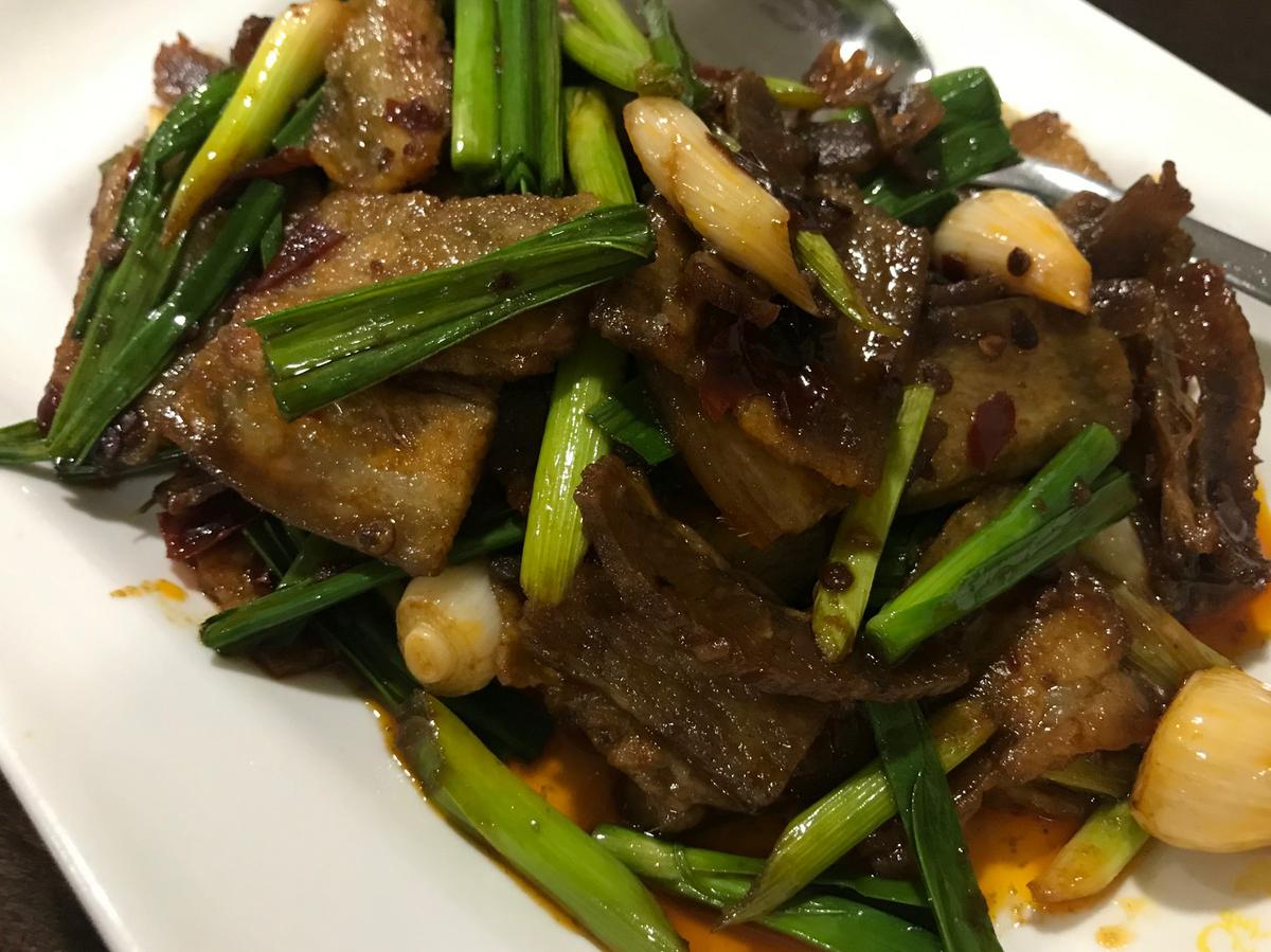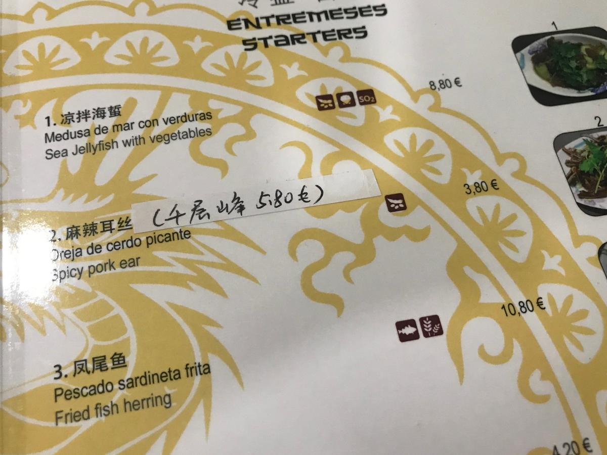 Lo primero que te impacta al sentarte es cuando te dan la carta, parece un libro de lo extensa que es. Contamos más de 200 platos y entre ellos algunos bastante curiosos como medusa de mar, cuello de pato o callos picantes. Sinceramente la medusa no nos atrevimos a probarla1 de 3