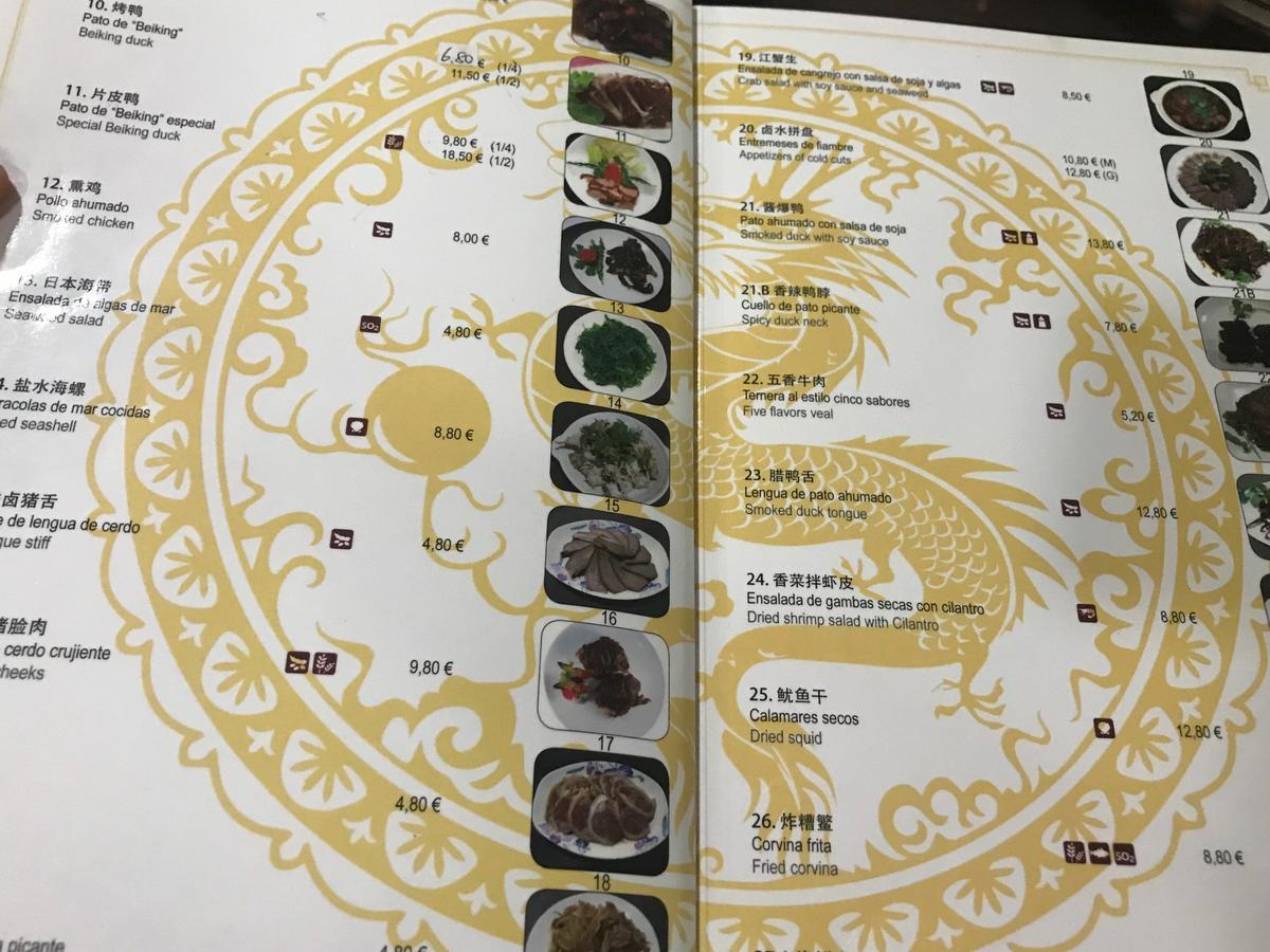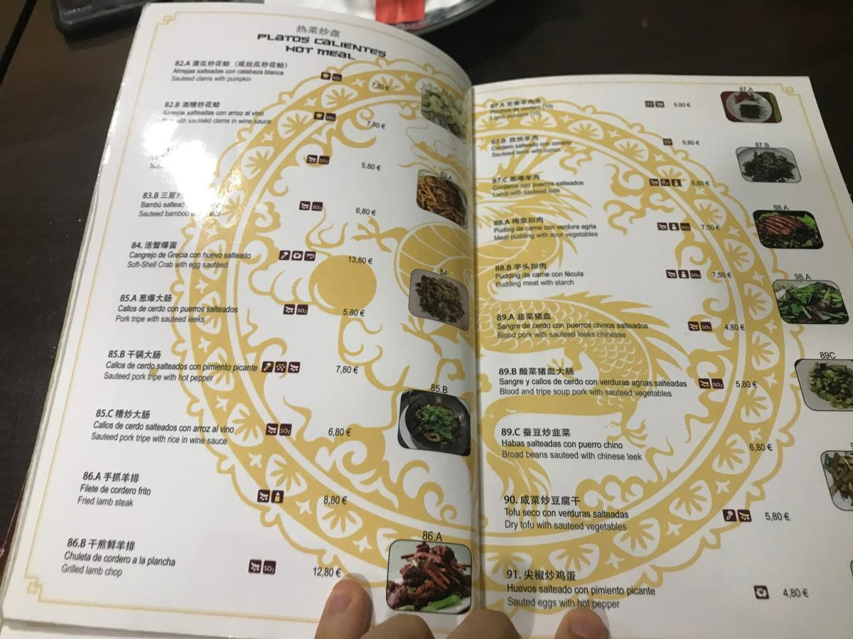 Si tienes alguna duda en la carta puedes ojear las fotos que te ponen, es difícil que los camareros te lo expliquen con detalle ya que casi no hablan castellano. Mejor hacerte una lista con los platos antes de que llegue el camarero porque entre tanta página no te costará volver a encontrarlo.