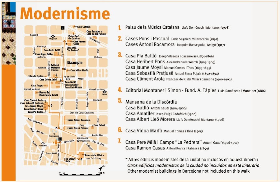 Os propongo empezar nuestra ruta por Barcelona desde la estación de Plaza Cataluña. Para empezar podemos visitar la llamada Manzana de la Discordia, donde encontraremos los edificios más emblemáticos de la arquitectura modernista tan característica de esta ciudad. Os dejo esta mini ruta por el modernismo que os aconsejo seguir primero por una acera y al llegar a la Diagonal, cruzar de acera y volver a bajar a Plaza Cataluña.