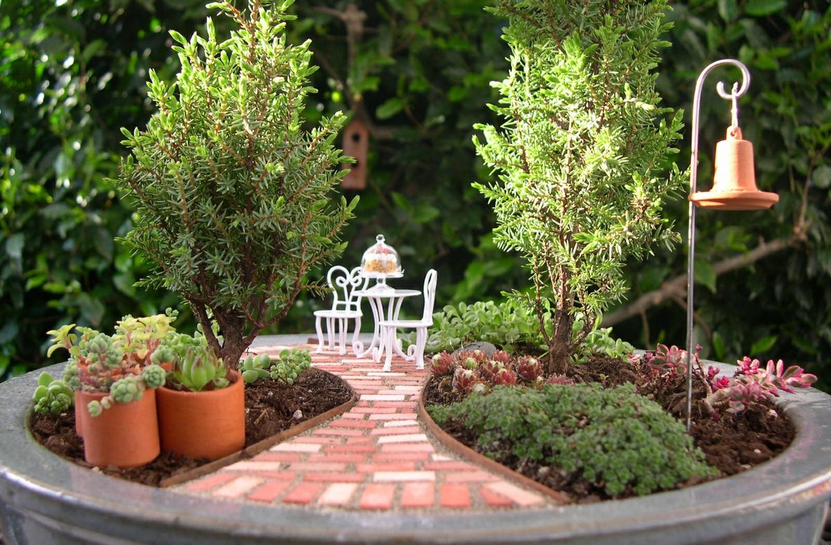 Esto me hizo hacer una búsqueda por google imagen encontrando jardines en miniaturas que no son más que masetas u otros embaces decoradas de forma tal que parecen jardines reales.