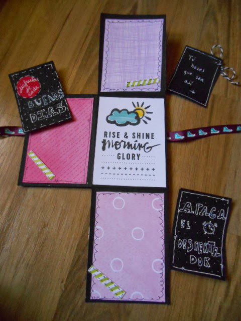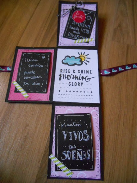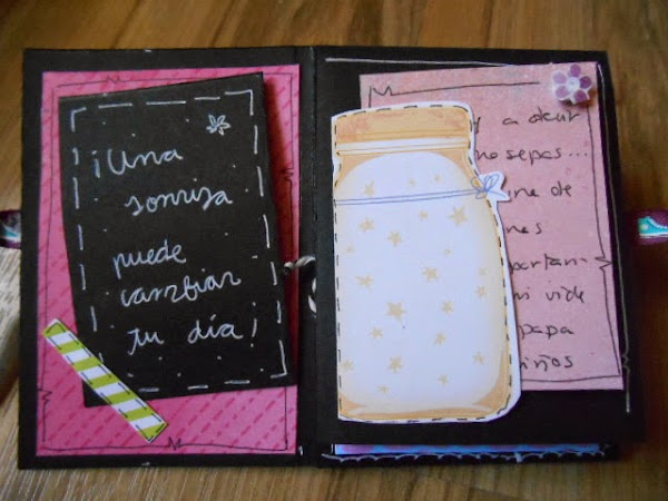 El mini se divide en dos partes, en esta parte van tarjetitas con frases y consejos para tener una vida feliz, debajo de cada tarjetita se puede poner una foto, y mi tarrito de sueños con una cartita para mi mami ???