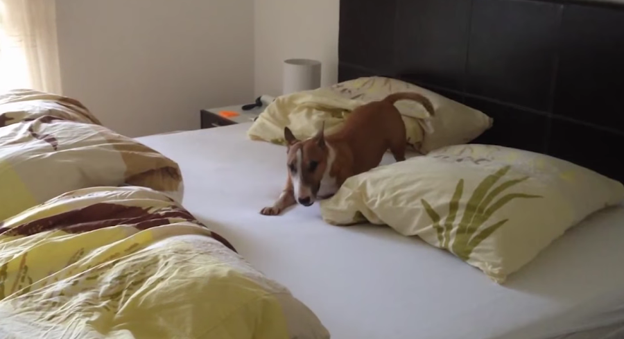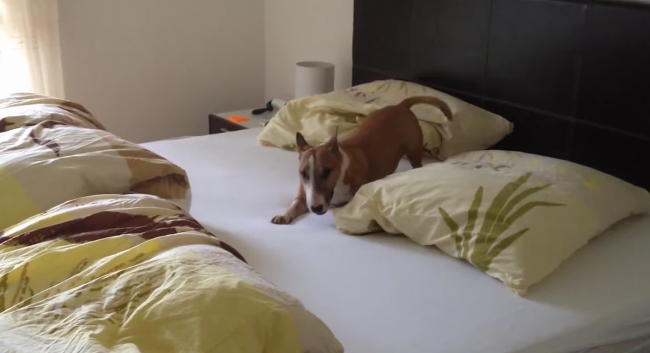 Su dueña, nunca lo dejaba subir a su cama... Pero un día el logro hacerlo!