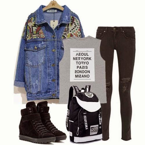 4. Y nos vamos con una cazadora denim con estampado geométrico, de manga larga y en azul, perfecta para un look más juvenil e informal.