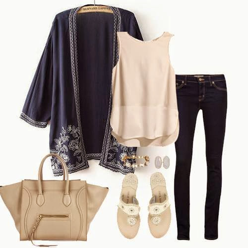 1. Empezamos por este kimono suelto bordado, de media manga, en color azul marino. ¿No os parece sencillamente perfecto?