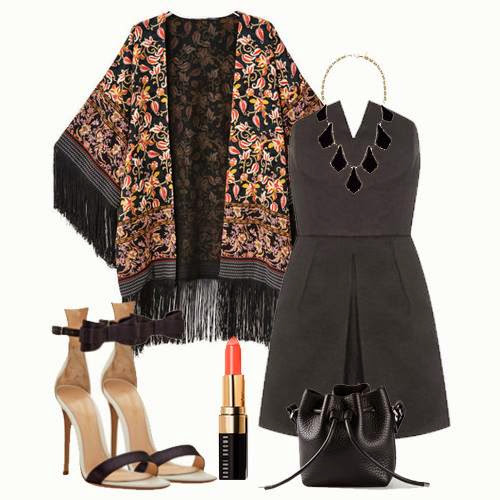 2. Continuamos por este otro, igualmente bonito, pero con un estampado floral, fondo en negro y flecos en las mangas. ¿A qué es muy vistoso?
