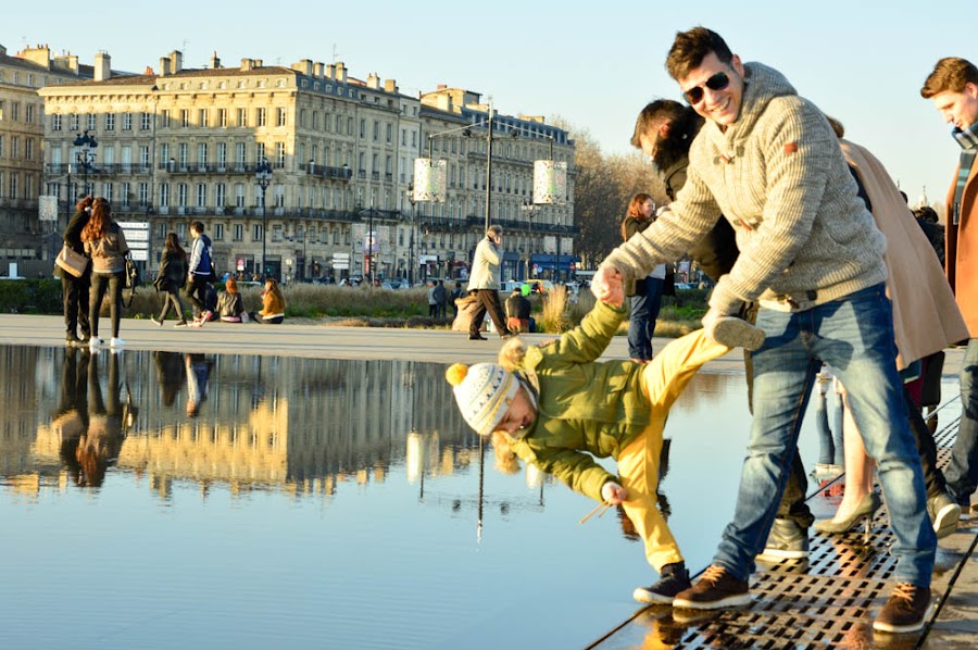 Plaza de la Bolsa (Place de la Bourse), después de dedicar un gran espacio de tiempo a la plaza, vamos hacia el precioso y cómodo paseo que hay junto al río Garona, y según vamos paseando llegamos al famoso Espejo del agua ¿recordáis lo que es?. La verdad es que disfrutar de este famoso espejo en verano es una gozada, ya que en invierno luce mas espectacular. ¿Te imaginas correteando descalza por ella?