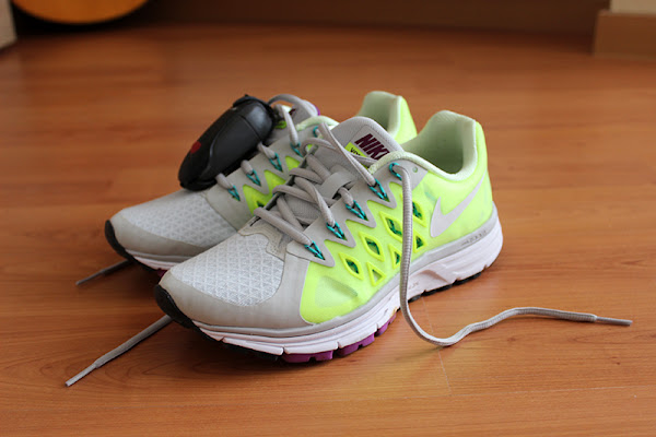 La segunda compra han sido unas zapatillas. He intentado retrasar esta compra lo máximo posible, ya que las había cambiado en noviembre. Pero es que desde el principio las zapatillas me quedaban grandes, y ahora con el calor me estaban empezando a hacer ampollas, ya que el pie se me movía dentro de la zapatilla y me rozaba. ¡Era como si llevara lijas en vez de calcetines! Probé también con vaselina y calcetines gordos, pero nada. Mis anteriores zapatillas eran una Asics Cumulus 14. Las anteriores fueron las 13 y me fueron fenomenal, pero las últimas debieron cambiarle la horma, porque siendo un numero menos me quedaban grandes. Debí probármelas mal, o con un calcetín mas gordo ¡y la lié! Así que el sábado me pasé toda la tarde probándome zapas y al final las elegidas fueron las Nike Vomero 9 . Llevan doble cámara de aire y son comodísimas, además me van como un guante. He estado leyendo comparativas con Asics, y son igual o incluso un poco mejor