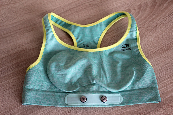La primera es un sujetador que incorpora la banda para poder llevar el sensor del pulsómetro. Cada vez que llegaba el calor, el pulsómetro me hacia unas heridas terribles debajo del pecho, y ni si quiera con vaselina se evitaba. Una amiga me comentó que los había visto en decathlon, y el sábado pasado por fin lo encontré. Es de la marca Kalenji y cuesta 20â?¬. De momento solo tenían un color, ¡que me encanta! y espero que traigan mas para poder tener varios. Lo probé el domingo y de momento parece que funciona. ¡qué buena idea!