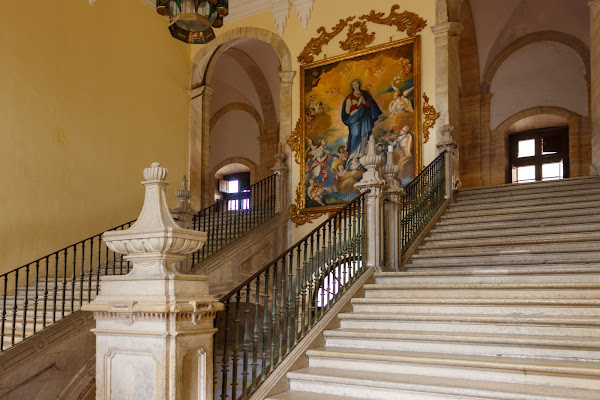 Extraordinaria escalera bajo cúpula elipsoidal sobre pechinas decoradas en forma de concha