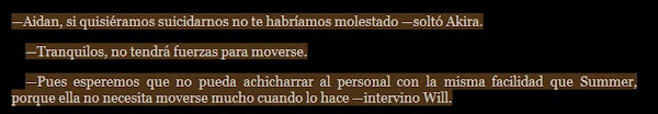 Hay más personajes secundarios que forman parte de uno u otro equipo de mercenarios, quizás los que mejor conocemos son los que pertenecen al equipo de Summer, y entre ellos Akira fue mi Crush literario de este libro, a pesar de algún que otro defecto que tiene (por ejemplo, el terror por Rayo)