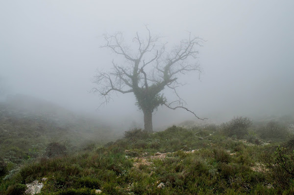 Pasamos por una masía abandonada y el paisaje era muy siniestro, todo cubierto de niebla, daba un ambiente de película de miedo.