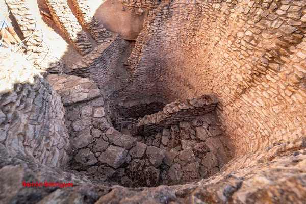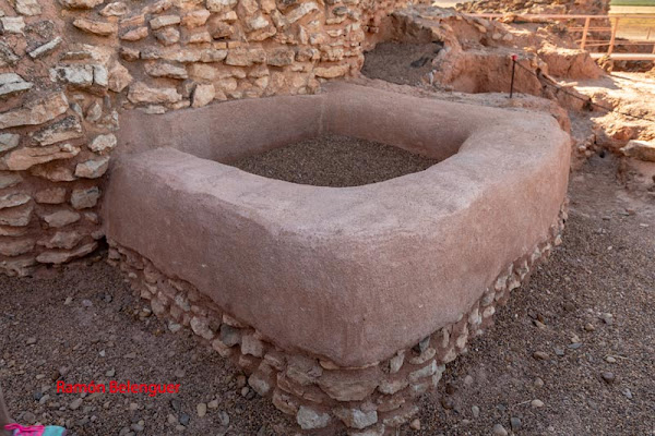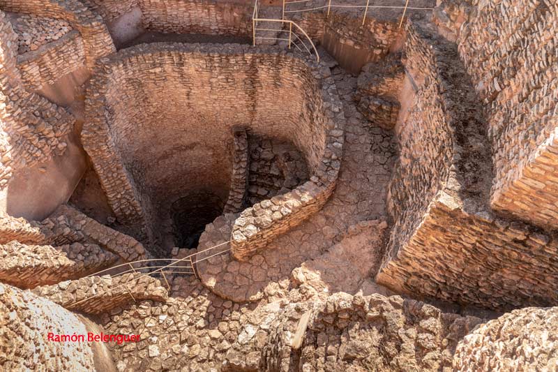 Especialmente significativo es el gran patio trapezoidal situado al este de la fortificación, y en cuyo interior se encuentra un pozo para la obtención de agua. Conforme los niveles hídricos bajaban en aquella época, los habitantes de las motillas accedieron a los niveles más bajos del nivel freático del agua por medios de pequeñas rampas descendiendo más y más en el subsuelo, superando según datos del yacimiento, los 14 metros de profundidad. Con sus más de 4000 años de antigüedad es la estructura hidráulica más antigua documentada en la Península Ibérica. Satisfacía así las necesidades de la población a través de la perforación de las terrazas del río hasta llegar al nivel freático.