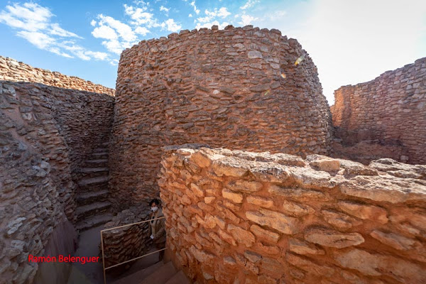 La línea de fortificación más externa, circular y concéntrica a los sistemas defensivos, presenta en su última fase de construcción un paramento de grandes bloques de caliza. El acceso al interior del área fortificada desde el poblado se realizaba a través de pasillos paralelos a las murallas.