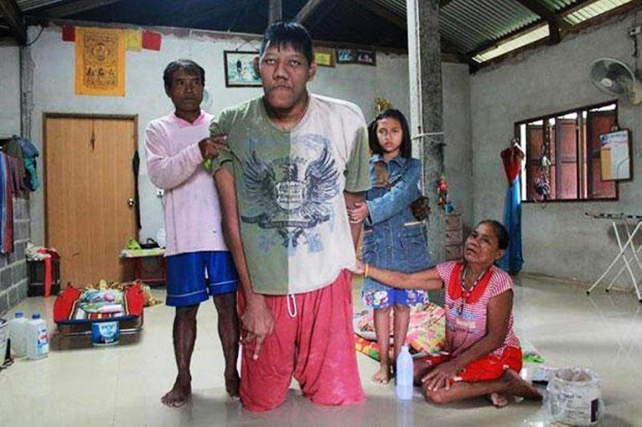 Pornchai Saosri era el menor de dos hermanos, su familia se dedicaba al cultivo de arroz y el cuidado de animales de campo. El tamaño de Oaf fue revelado cuando los médicos del hospital Ramathibodi de Bangkok midieron al muchacho y descubrieron que con apenas 26 años había alcanzado una altura de 2.69 metros.