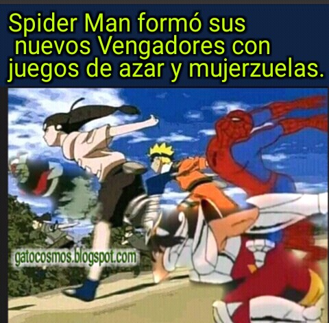 El hombre araña, Seiya caballero del zodiaco de Pegaso y Mazinger z corriendo como Naruto con Naruto.