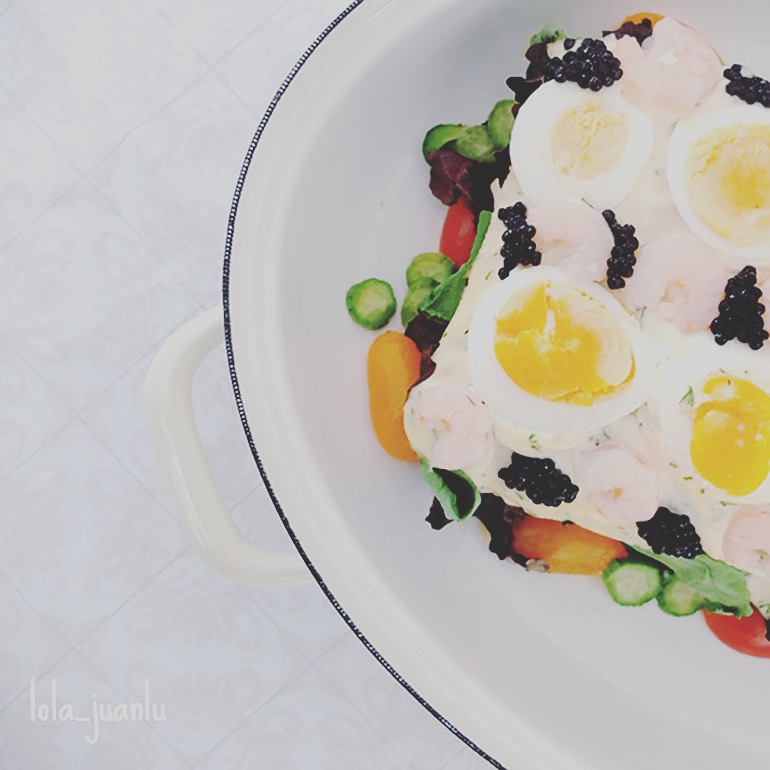 El menú hygge que he preparado se compone de tres platos muy, muy hyggelig. Empezamos con un primer plato fresco, fácil de hacer pero que necesitaba su tiempo para elaborarlo y poder así sorprender a mis invitados, un delicioso pastel de salmón.