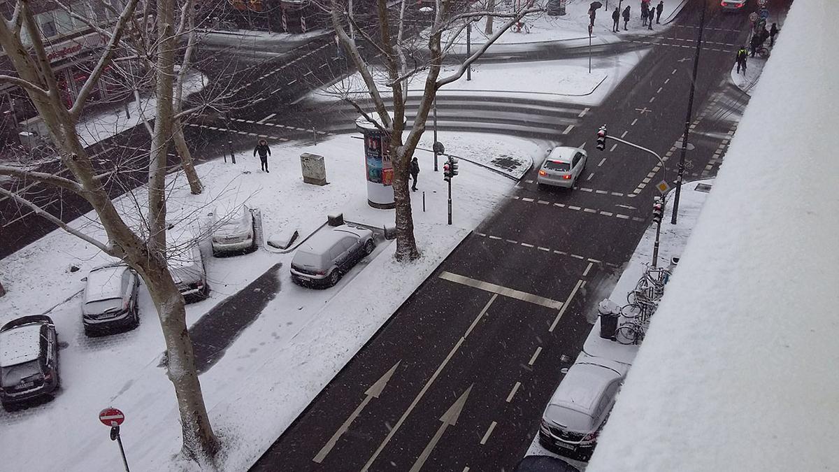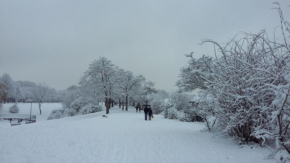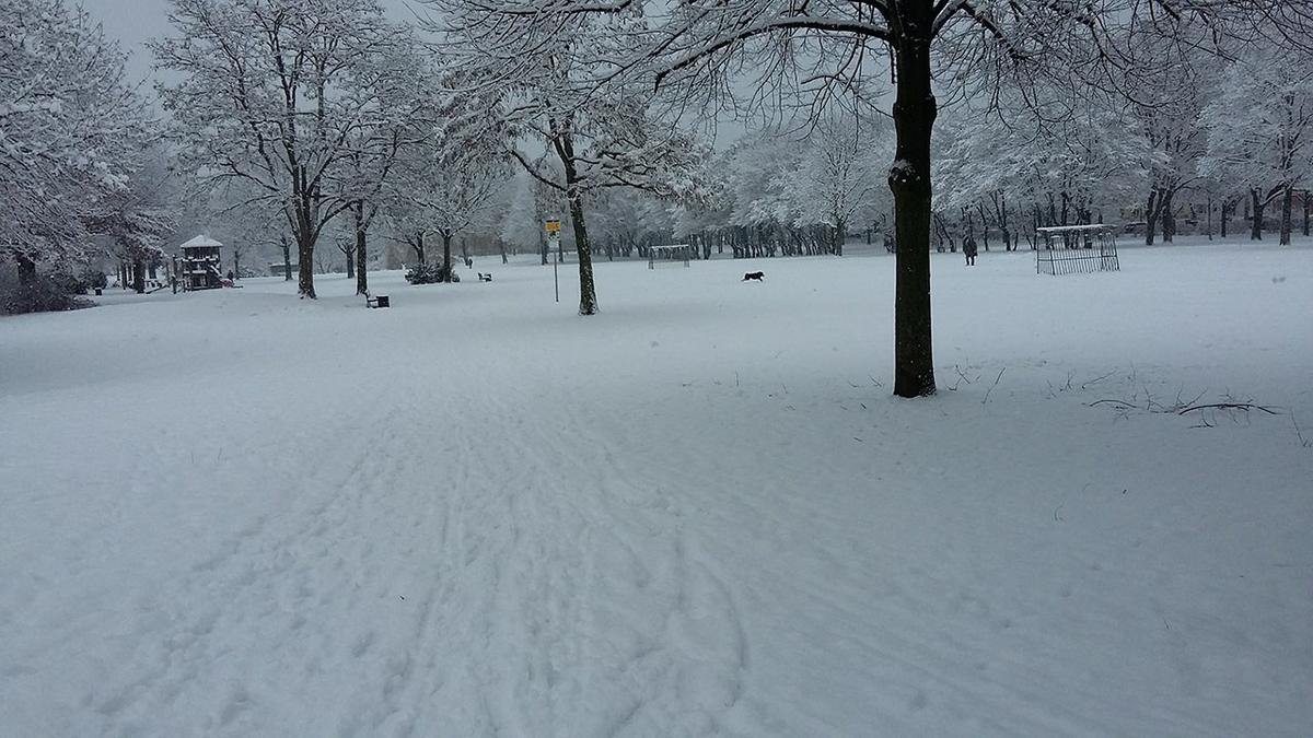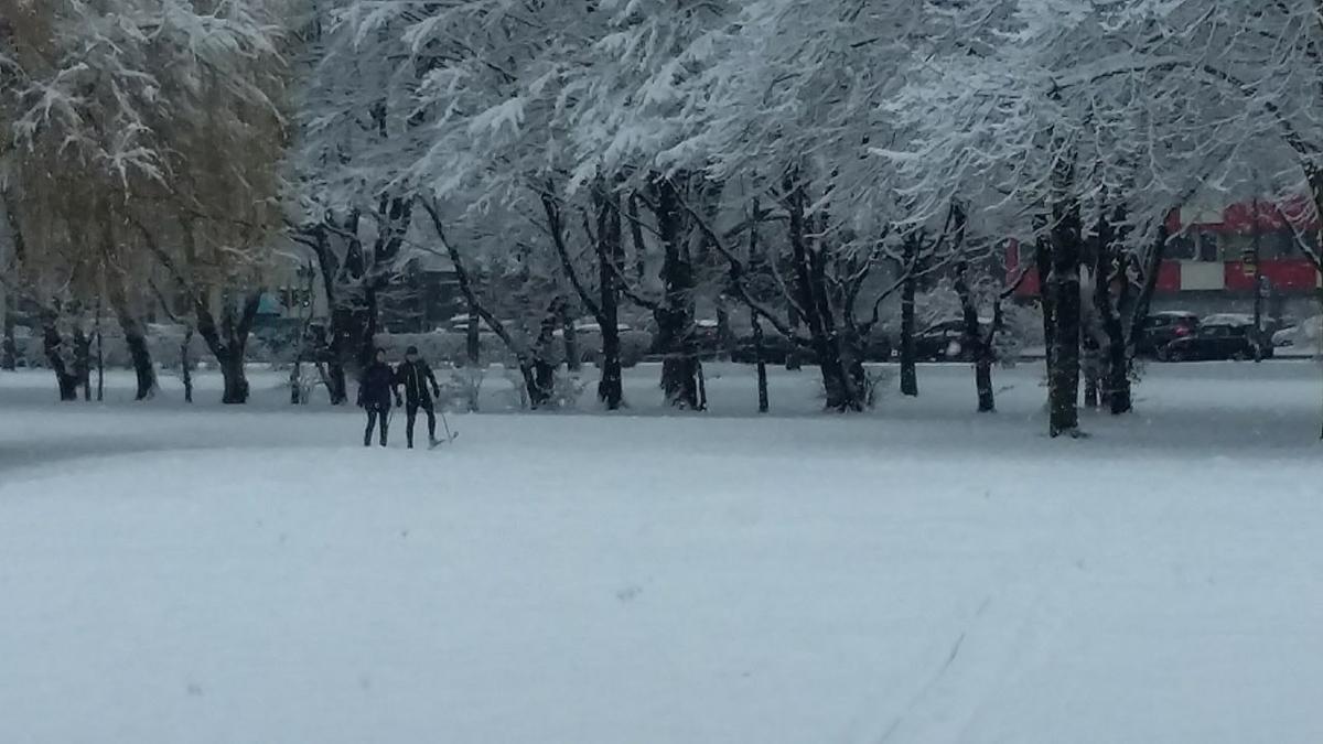 Los restos de la tímida nevada del miércoles fueron cubiertos rápidamente por los copos cuajados que cayeron el jueves.