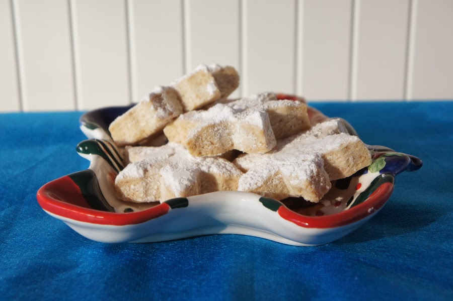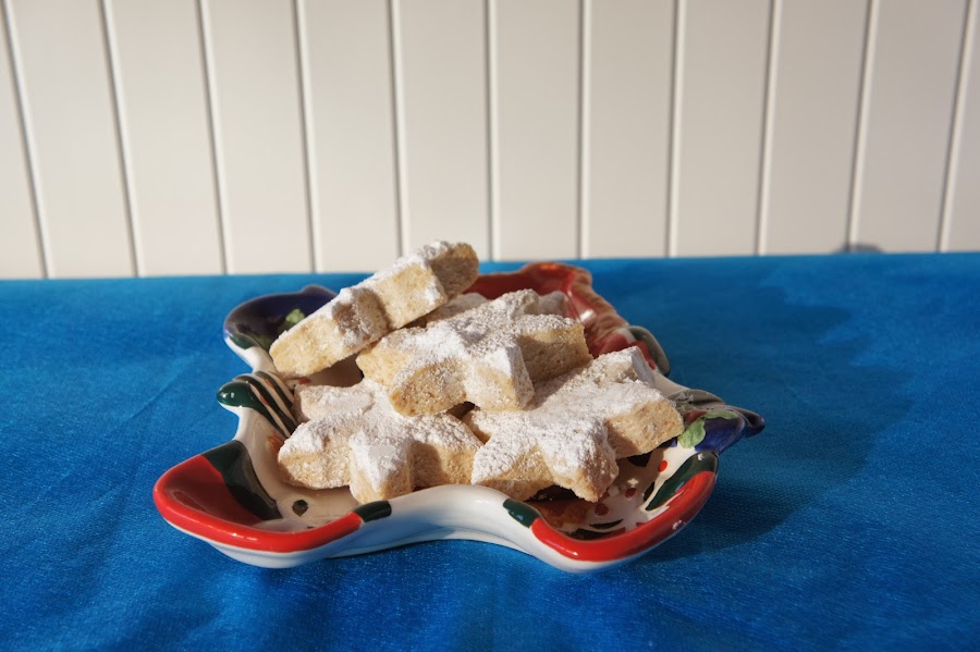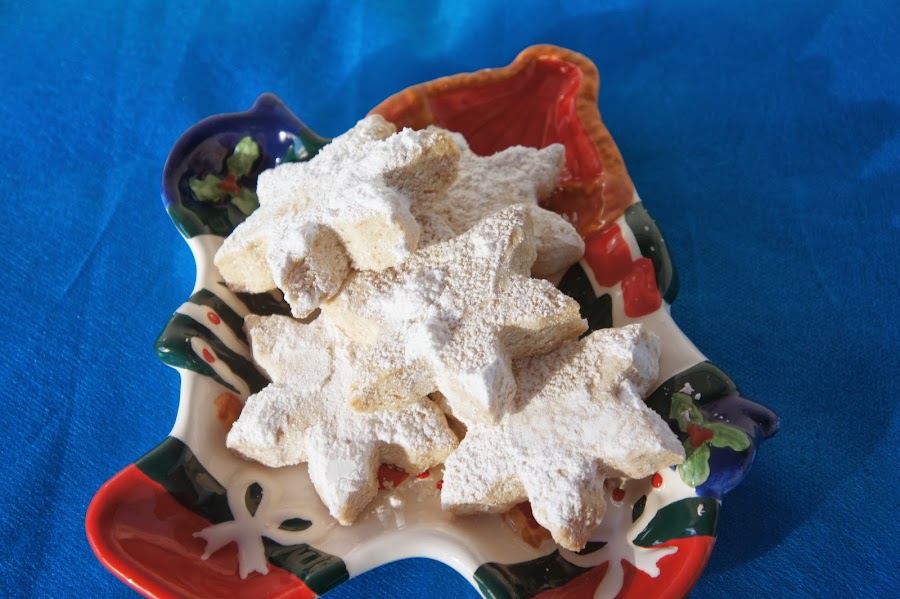 Dejamos enfriar y espolvoreamos con azucar glass. Los podemos guardar en una lata, aguantan bastante tiempo, así que los podemos hacer con bastante antelacióna nuestras comidas navideñas.