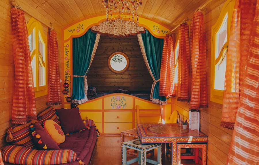 Adornados de vivos colores y con mobiliario tipo de estos carromatos, si quieres disfrutar de una noche romántica y diferente o de una aventuras con tus peques no lo dudes y disfruta de los carros zíngaros y de la naturaleza del País Vasco.