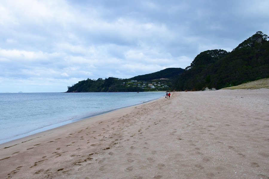 El trayecto dura a buen paso una hora, por un sendero con varios miradores que lleva hasta lo más alto y que nos obliga a descansar en la cumbre, para disfrutar de una vista de 360º de todo el litoral y de la preciosa población que parece descansar sobre la playa de arena dorada. Si la subida me gustó, más lo hizo la bajada, donde el camino deja de serpentear entre árboles y arbustos de pohutukawa para hacerlo por verdes pastos que rozan el mar y que están habitados por una enorme cantidad de confiadas ovejas y corderos.